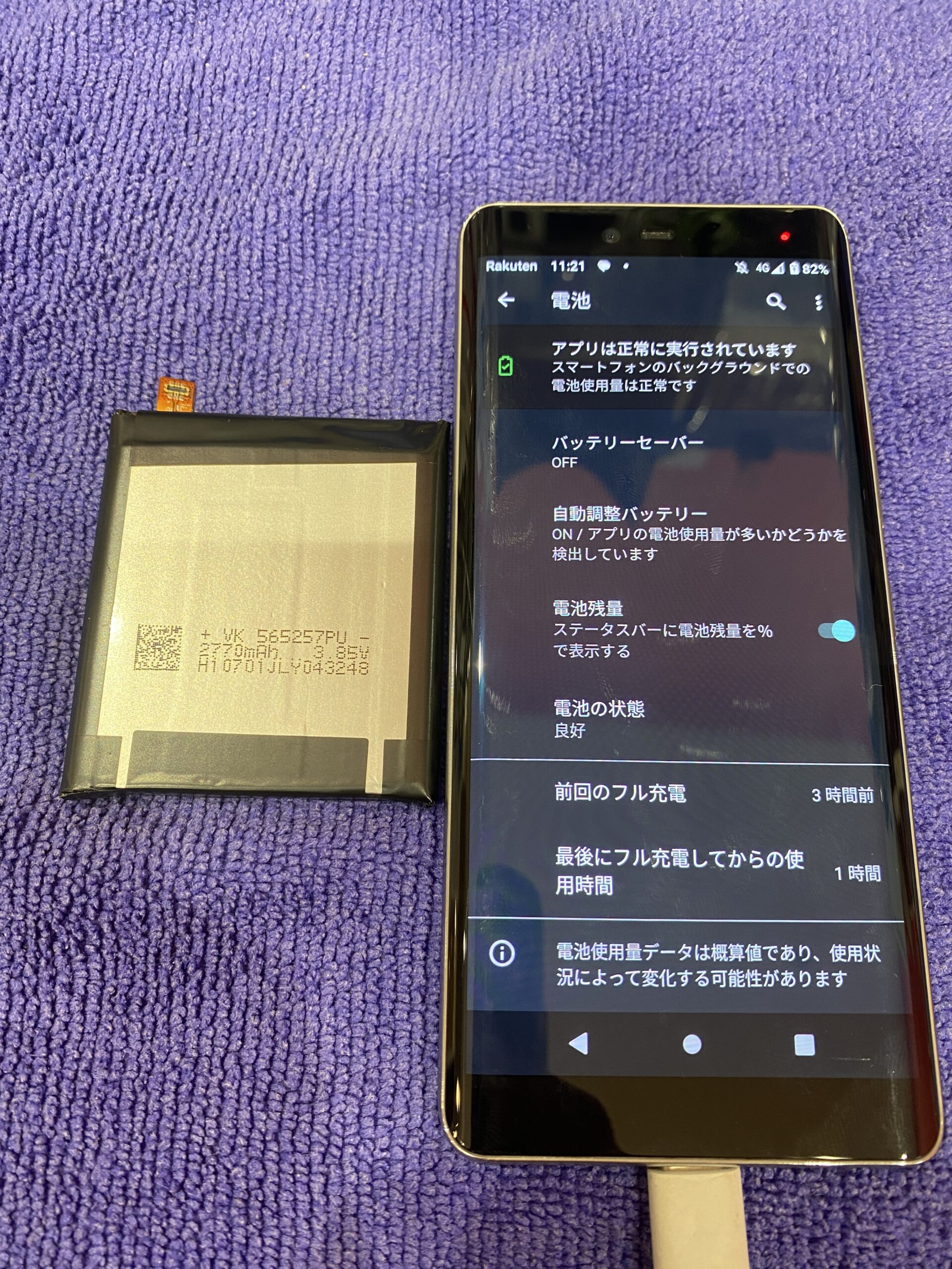 Android修理依頼の中でもかなり珍しい部類に入るRakutenHand。 今回はそんな楽天ハンドのバッテリー交換のご依頼をいただきました。 公式LINEにて事前にご相談いただいたお客様です。 大半のアンドロイドスマートフォンと同じようにバッテリー交換には背面を取り外す必要があります。 それも結構固い粘着で固定されているため取り外すのも結構一苦労です。 熱を加えて徐々に取り外すことになります。 取り外すと今度はすぐに基板、というわけではなく基板上に配置されているカバーを取り外す作業になります。 それが終わりようやく古いバッテリーのコネクタを外すことができます! その後は、新しいバッテリーに取り替えます! 取り替えた後には念のために動作のチェックを行います。 今回はあくまで電池の持ち時間が悪い、というご相談でした。 なのでバッテリーに通電がうまくいっているか、充電は問題ないかをチェックします。 テストでは得意に問題なく行えたため、この後はさきほどとは逆の手順を行い取り外した背面を再度接着します。 ここで注意いただきたいのは背面の接着には両面テープを用いるため少々お時間をいただくということです。 端末の中には、爪、もしくはネジで止められているものもありますが極めて稀。 基本的には両面テープでの接着がデフォルトです。 そのため諸々の修理時間となると約3時間ほどなのですが、このテープで背面を圧着するという点に時間がかかります。 修理ご依頼の際には事前のご予約、さらに修理時間がございますのでできるだけお休みの日などにご依頼ください。 スマホ修理ドットコム川口公式ホームページは下のバナーをクリック 公式LINEより修理についてお問い合わせください!
