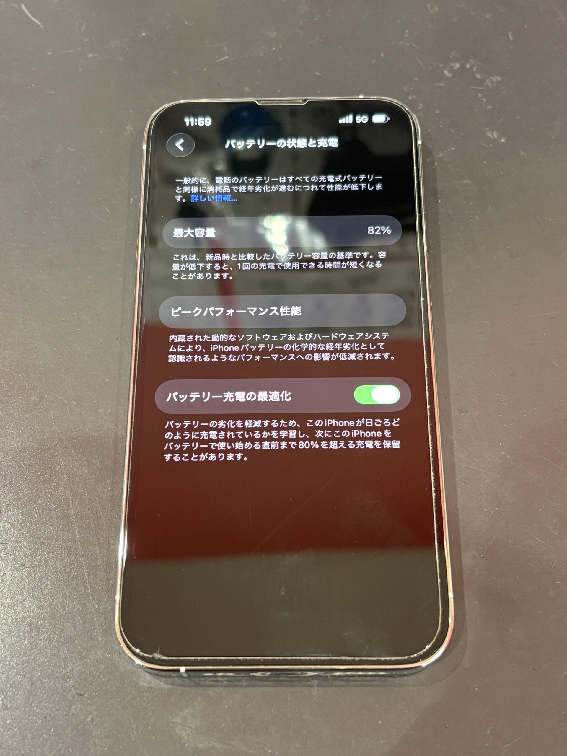 ◆修理概要 機種:iPhone13Pro(2021年モデル) 症状:使っていない状態でも充電消耗が激しい 修理内容:バッテリー交換 作業時間:約1時間程度 ※当日の混雑状況によって修理時間が前後する可能性がございます ◆iPhone13Proは発売されてから今年で5年! 使い続けて3年程度。 バッテリー最大容量は82%ですが、使用状況を確認すると、使っていない状態でも充電消耗が激しいことが確認できました。 使っていない状態でも充電消耗が激しい場合、位置情報を使用するアプリケーションが起動していることが多いですが、今回の場合その様子もないため、バッテリー交換を行って見ることになりました。 充電持ちが悪くなる原因として、バッテリーはもちろんですがもう一つは基板やその他パーツの劣化。 劣化が進むとその分その部品も多く電力を使用するため、バッテリー持ち低下につながります。 ◆iPhone13Pro バッテリー交換完了後 バッテリー交換後、最大容量は100%になりました。 iosバージョンによって最大容量が維持されない場合もございますが、アップデートを行うことで改善いたしますのでご心配なく! 充電が問題なくできるか、その他パーツの動作が問題がないか確認を行なって修理は以上です! ※バッテリー保証期間は1ヶ月 ※水没歴のある端末に関しましては保証対象外になります。 ◆スマホ修理ドットコム 公式LINE ※武蔵浦和店は改装・耐震工事のため2026年6月末まで休業となります。 ◆ララガーデン川口2階にてiPhoneバッテリー交換受付中! iPhone12Proバッテリー交換!事前のご予約で在庫確保可能! 【川口市】iPhone14ProMax バッテリー交換|最大容量100%に復活!即日修理対応 iPhone13の電池持ちが悪い?西川口で即日バッテリー交換しました