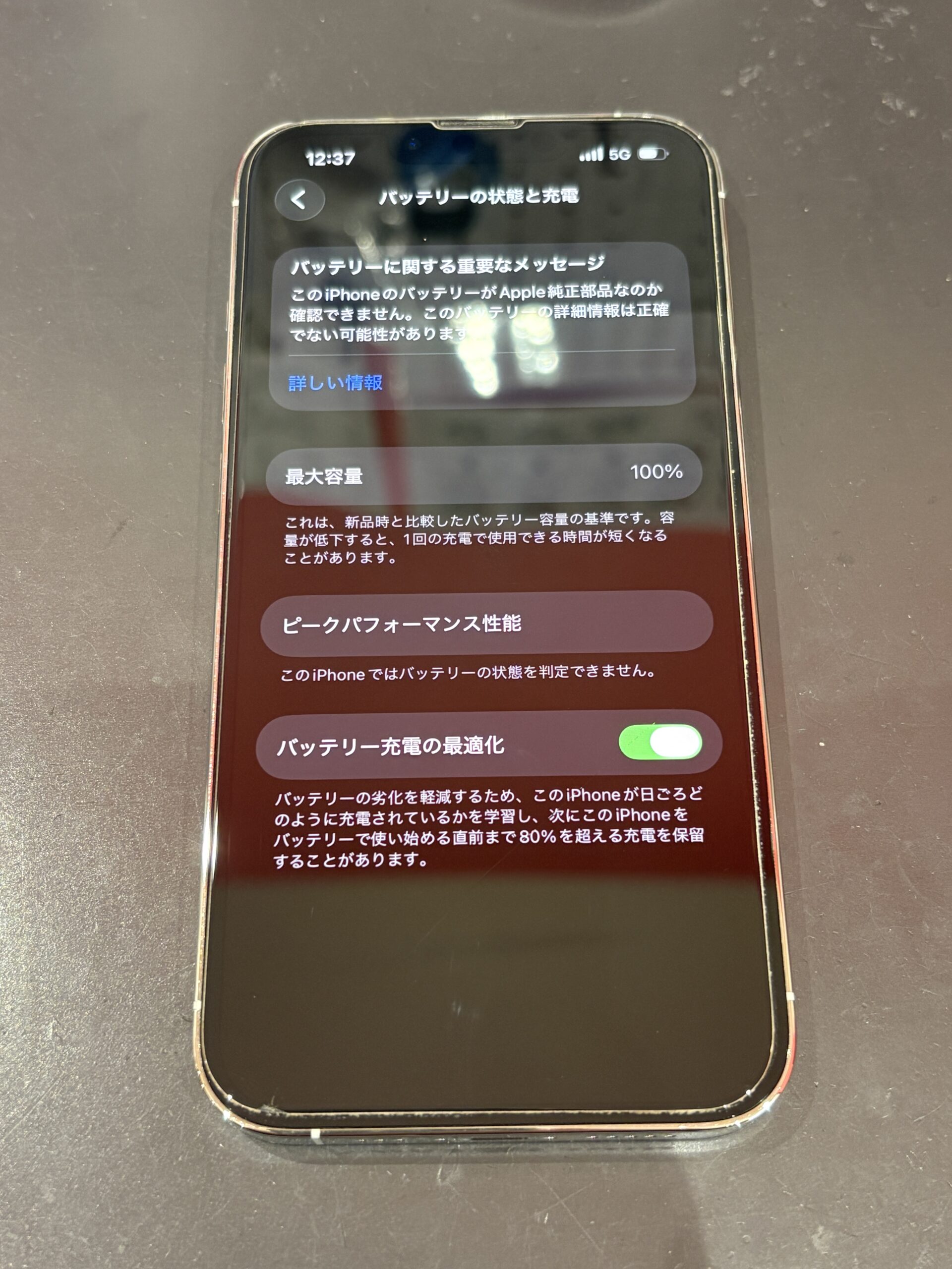 iPhone6Plusや6sPlusに続いての大型画面、iPhone7Plus。 2016年に発売された本機は今年で10年目となります。 10年前のiPhoneとはいえ、こちらはまだお客さまのサブスマートフォンとして利用されているようで最近はもっぱら、バイクのナビとして使用されているようです。 こちらはiPhoneの内にあるバッテリー設定画面のものになります。 バッテリーに関する重要なメッセージとの記載があります。 このiPhoneではバッテリーの状態を判定できませんとの記載があります。 本来であれば最大容量という項目には数字が表示されます。 新品時の100パーセントから始まり徐々に消耗が進むと数字が減ってきます。 しかし表記されていないところを見るとかなりの消耗をしてしまいこの機能がうまく作用していないということになります。 同じようなメッセージが出ている時は電池の交換しどきかもしれません。 できるだけ早めに修理を行いましょう! 交換後は最大容量が100パーセントの表記に戻りました。 iPhoneXs以降ではまた少し変わってくるのですが、この時代のiPhoneですとこのように100パーセントの数字が表示され、さきほどのエラーメッセージのようなものは表示されなくなります。 この状態が本来の表示としては正しいので無事に電池交換で機能が回復しました。 さて先ほどもお話ししたように既に10年前のiPhoneです。 パーツも在庫がない時がありますので必ず事前にお問い合わせを! 店頭にない時はにはお取り寄せ対応になり少々日数をいただきますので予めご了承ください! スマホ修理ドットコム川口店公式ホームページは下のバナーをクリック 公式LINEのバナーはこちらです! 修理相談や予約はこちらからどうぞ!