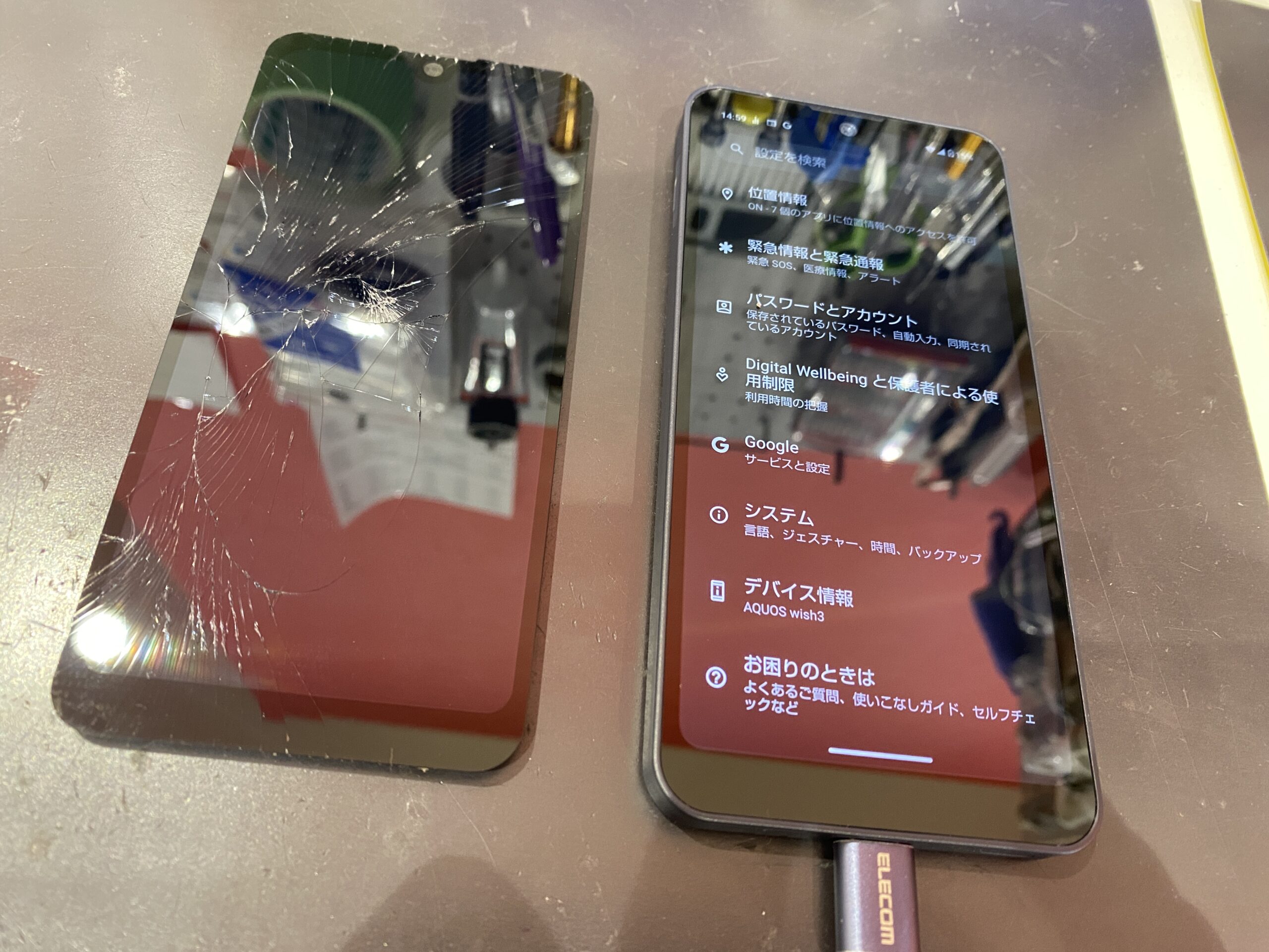 【さいたま市】AQUOS wish3の液晶破損・画面割れ修理を対応いたしました!