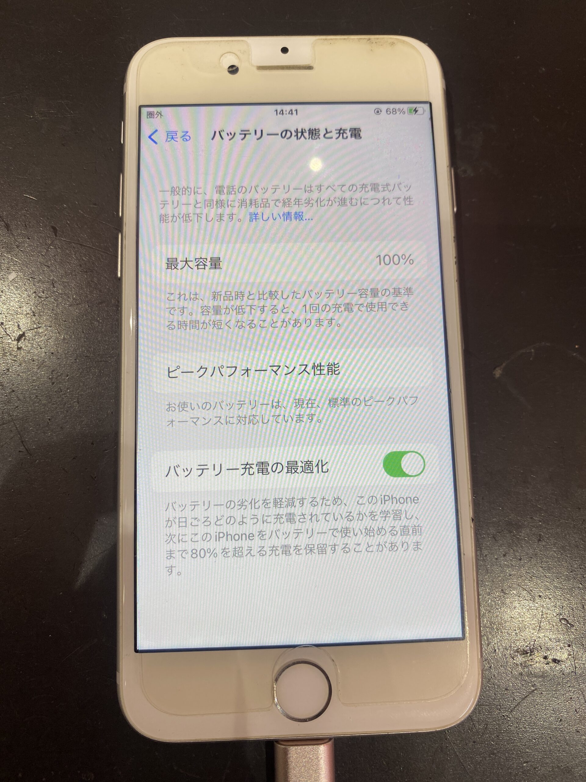 今年でついに発売から9年目のiPhone7! 来年になれば10年目になるものすごい古いiPhoneです! 最近では、そもそも依頼件数がほぼ見込めないため修理対応終わった店がでてきております。 当店では、パーツのご用意ができる限り行っていきます! バッテリーだけでなく、画面やカメラの修理もご相談ください! iPhoneの最大容量の数字はいつ頃にバッテリー交換が適切なのかを教えてくれます。 基本的にモデル関係なく共通であり最大容量79パーセントが交換の目安の数字になります。 数字がそこまで低下すると、画面上部のようなメッセージが表示され交換時期であることを教えてくれます。 今回のiPhone7は、すでに60パーセント台なので相当、低い数字であることがわかります。 ここまでくると、外出時にはモバイルバッテリーがないと充電切れが心配になるくらいです。 およそ45分から1時間ほどいただき修理は完了しました。 最大容量も100パーセントまで回復しました。 交換したバッテリーは一度、キャリブレーションというものを行っていただく必要があります。 特に難しいものではなく一度、100パーセントまで充電してその後、充電がゼロになるまで使い切るというものです。 その間、充電は行わないでください。 新しく入れた電池がより認識されるようになるので必ず行いましょう。 ケータイ買取ドットコム川口店! リニューアルした公式ホームページはこちらより! iPhone7の修理に関する相談、ご依頼公式LINEからでも受付中です!