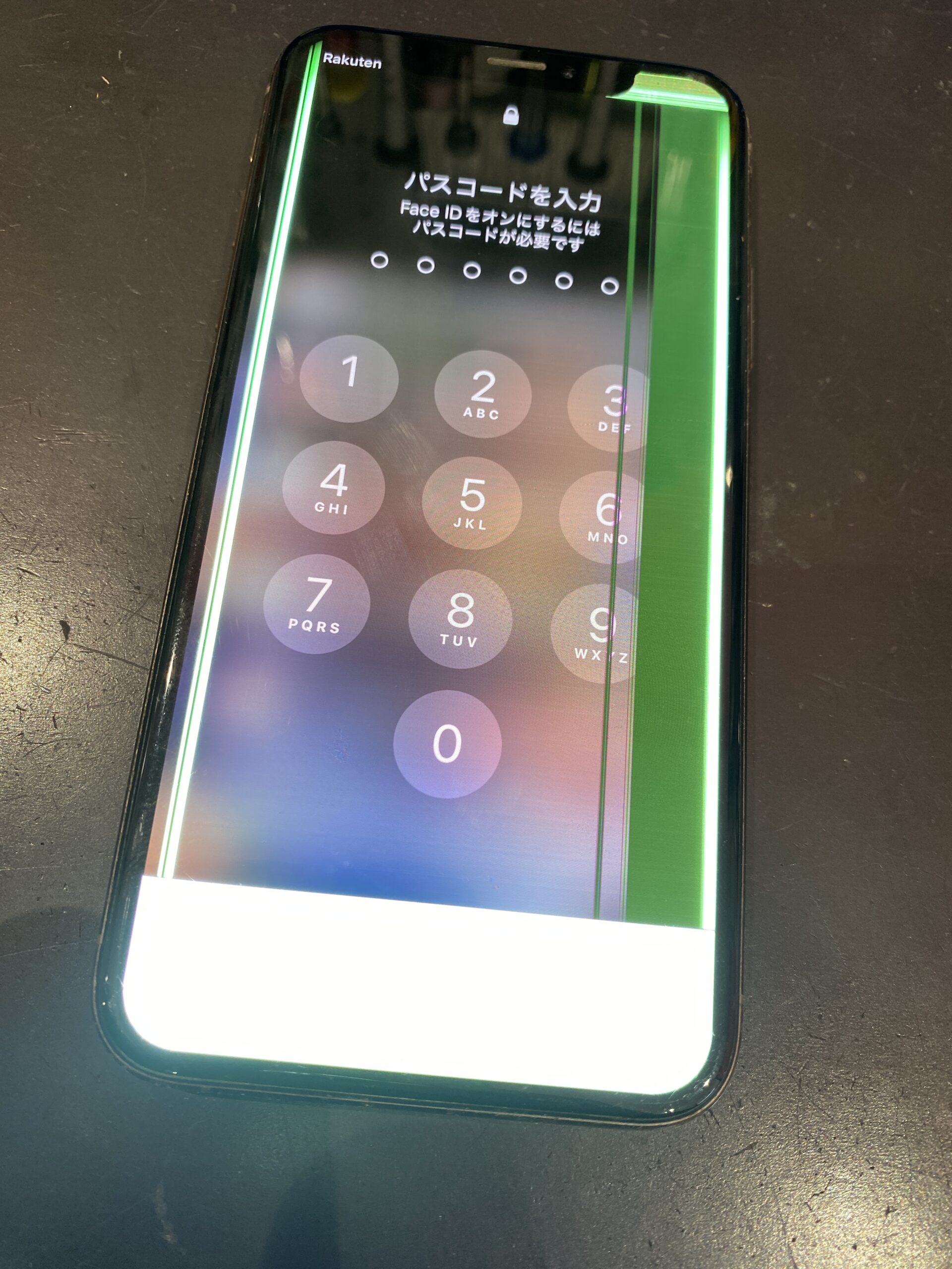 公式LINEよりお問合せのiPhone11Proの画面交換修理行いました。 こちらは左側のガラスの破片がかなり割れております。 そして画面に縦線が入り、見えづらいですが、左上には少しだけ液晶漏れしている箇所もでております。 かなり激しいダメージだったのか、左半分ほどがタッチ操作を受け付けないです。 そのため画面に設定されているパスコードを開くことができず、使用することができません。 今はこの状態で収まっておりますが、悪化するようなことがあればゴーストタッチなども起こす可能性は十分にあります。 パスコードを勝手に一定回数間違えられると初期化しないといけなかったりすることも。 そうなればデータ損失の危機なのでできるだけはやく修理にだしましょう。 画面の取り替えは完了しました! 基本的にiPhone11Proの画面であればおよそ1時間ほどの作業時間となります! ディスプレイ交換後、左半分のタッチ操作も無事に回復して使用できるようになりました。 これでまたスマートフォンとして使用できる状態になりました。 画面にトラブルが起きるとこのように操作ができない!ということもでてきます。 ちょっとしたガラス割れでもできるだけ早く修理した方が良いですが、操作ができないときはすぐに修理に出してしまいましょう。 スマホ修理ドットコム川口店公式ホームページは下のバナーをクリック スマホ修理ドットコム公式LINEはこちらのバナーをクリック