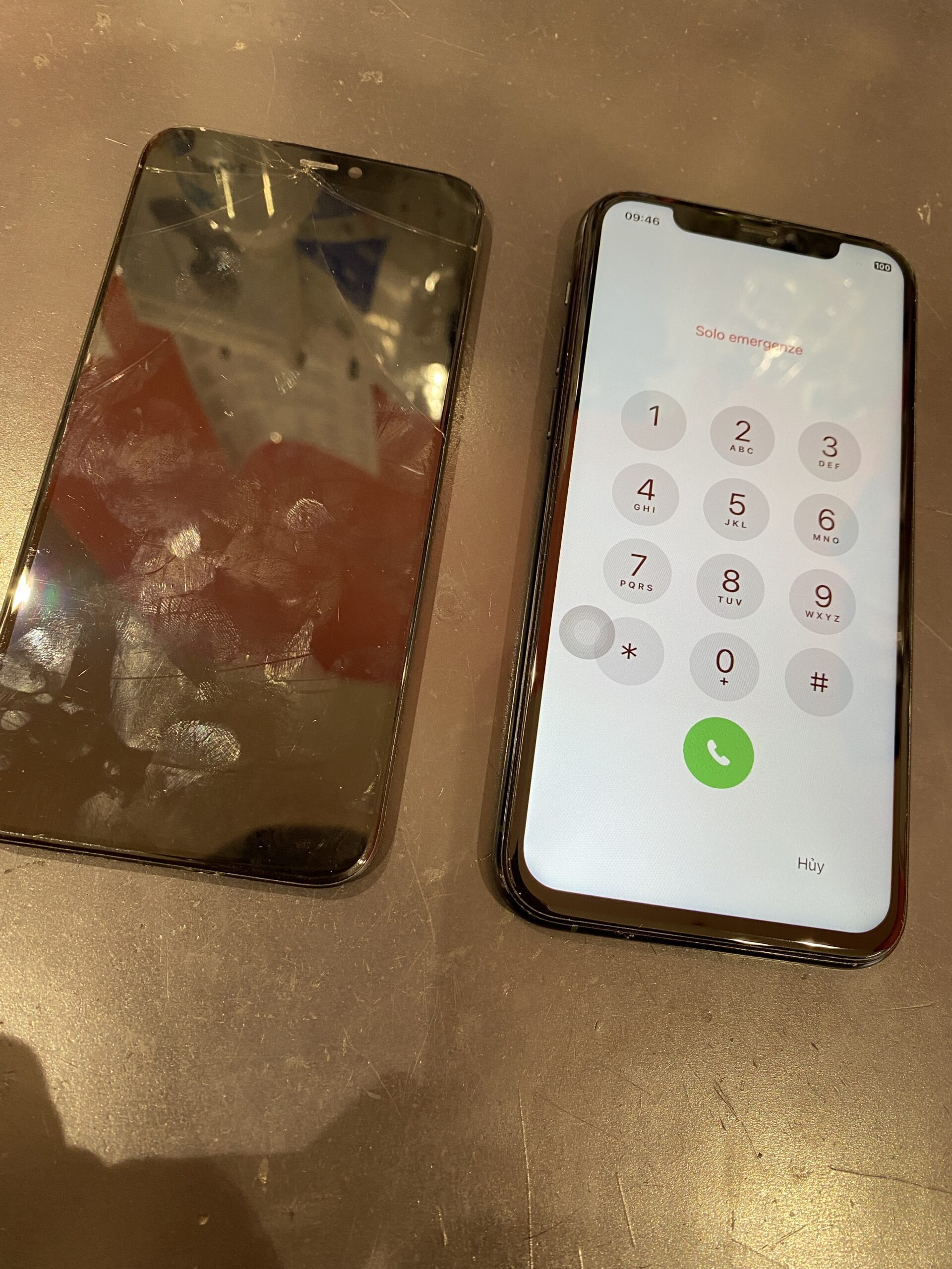 iPhoneXsの液晶漏れ画面の修理承りました。 状態は写真の通り、結構な範囲が液晶漏れを起こしております。 さらに表示不良を起こしている画面下部は白く光っており、バックライトのみが輝いております。 既にこちらの端末はタッチ操作もできなくなっておりパスワードの解除ができません。 もう全く使用することができず、スマートフォンとして使用不可です。 故障にも程度がございますが、画面操作不可に関しては至急修理が必要な状態です。 この後にさらに落としてしまいダメージが入ると画面が真っ暗やゴーストタッチが起きることがあります。 ゴーストタッチでは勝手にパスコードを間違えてしまうと、最悪の場合は本体初期化の可能性がでてきます。 そこまでいってしまうとデータは全て諦めないといけないので、データが大切という方はご注意を! 画面の交換は全てのパーツが新品になります。 表面のガラス、タッチパネル、液晶画面は一体化しているため新しいものに切り替わります。 修理後には表示もそうですが、タッチ操作も無事に回復しました。 液晶漏れやタッチ不良といった問題は放置していても改善はしません。 強制再起動を行ってもやはり変わるものではありませんので、お電話や公式LINEにて修理をご相談ください! スマホ修理ドットコム川口店公式ホームページは下のバナーをクリック 公式LINEより修理の相談、ご予約可能です! こんな端末も修理できるのかな?という疑問もこちらにてお話しください!