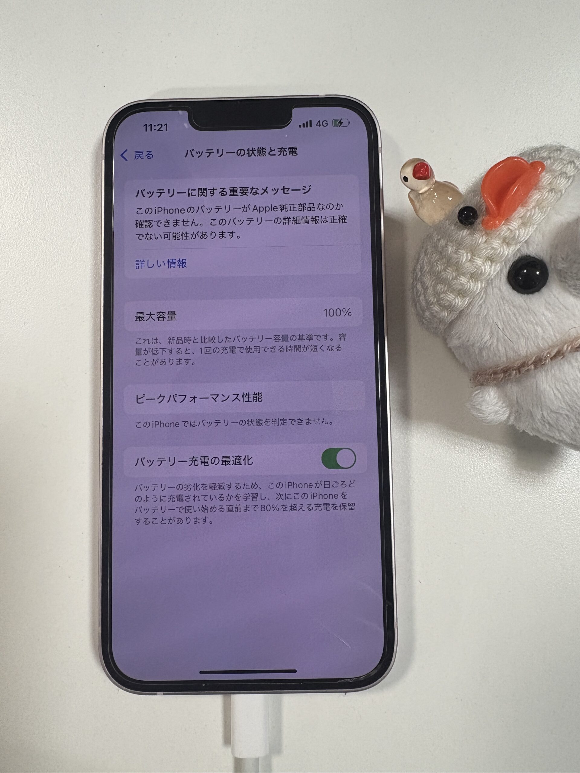▶︎修理概要 機種:iPhone15(2023年発売) 修理内容:バッテリー交換 作業時間:約1時間程度 ※当日の混雑状況によってお時間変動ございます。 ▶︎ご来店のきっかけ 来店動機:Googleマップ 預かりの段階でバッテリー最大容量は75% そして充電回数がなんと1000回以上! 使っていてやはり充電持ちが気になるとのことで修理依頼をいただきました。 発売から今年で2年目、バッテリー交換時期でもありますね。 隣にいる黄色い帽子のぽってりはミニビーンズシリーズのあざらしです。最近は一緒に店舗に出ています。名前は一応「ぽて」です。 ▶︎iPhone15 バッテリー交換完了後 iPhone14、iPhone15(Plus .Pro含め)バッテリー交換は背面からのアクセスになりました。 比較的修理自体は容易になりましたが、無理に力を加えたりすると背面が割れる恐れ、充電コイルのケーブル断線、背面カメラに傷をつけてしまう恐れもございますので自己修理にはご注意を! バッテリー交換後、最大容量は100% 充電回数もリセットされ「0」になりました。 修理後の動作チェックも行い、お客様にご返却になります。 ▶︎iPhone15 バッテリー交換に関するご相談は・・・ ▶︎iPhone15シリーズの修理依頼も受付中! ✅ iPhone15 Pro 液晶漏れ修理!浦和・さいたま市で即日対応! iPhone15のタッチ不良・液晶破損を川口市で即日修理!データそのまま画面割れ対応 【背面パネル】iPhone15 修理を行いました!【戸田市より】