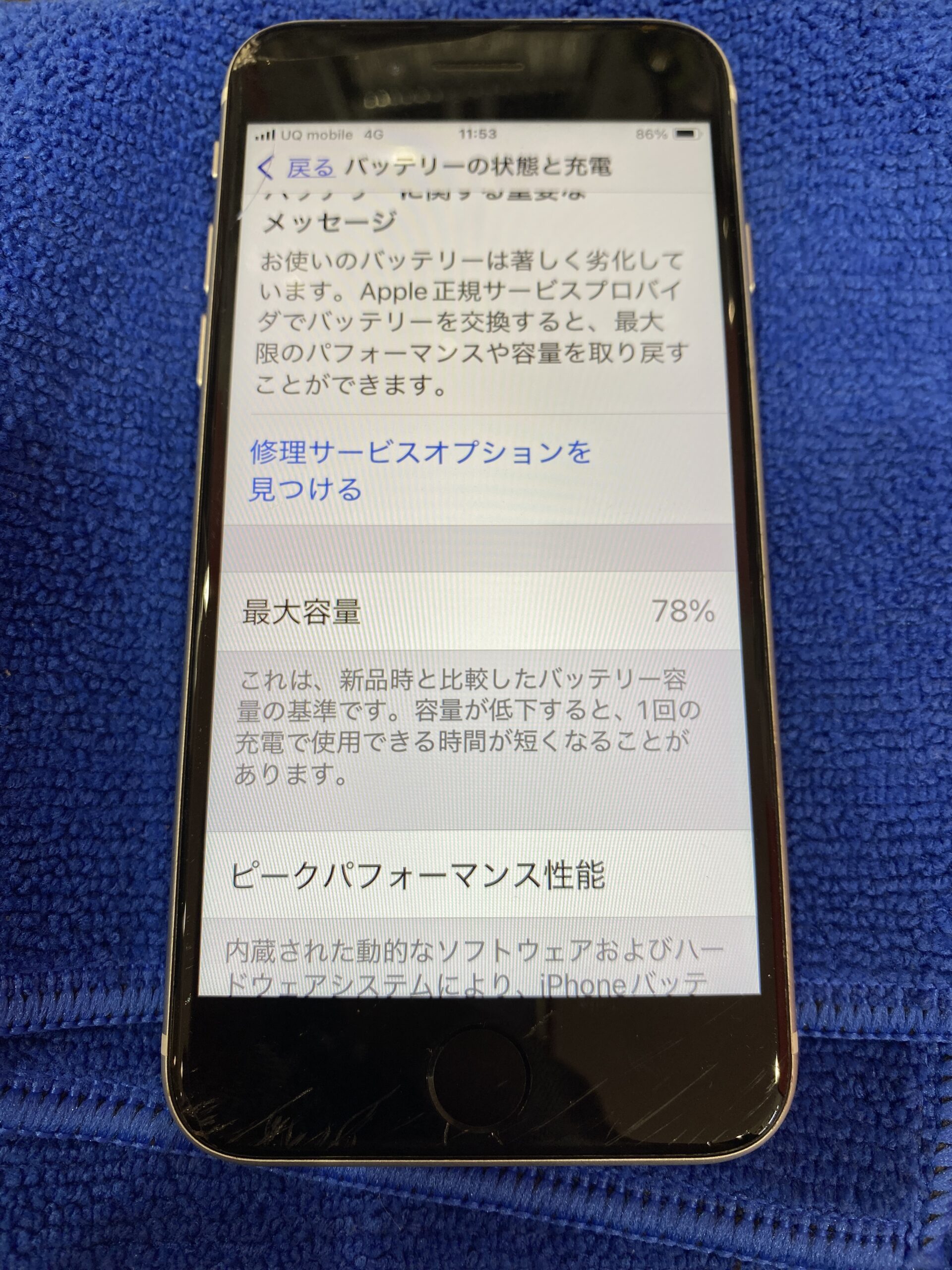 【川口市】iPhone SE2 バッテリー交換|最大容量72%→100%に!即日修理対応