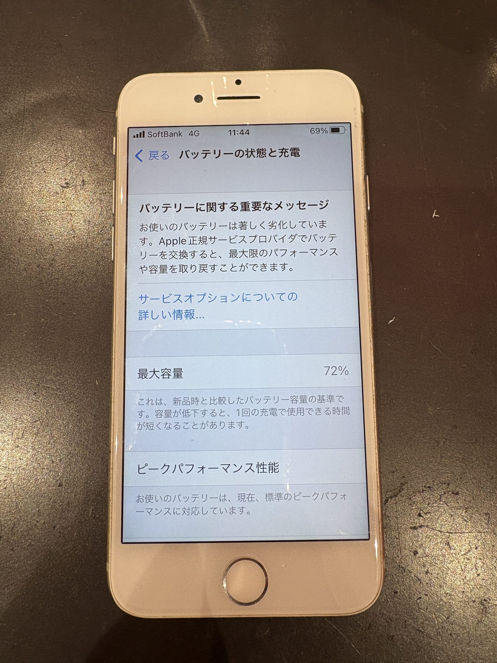 ご依頼のスマートフォンはiPhone8。 2017年発売端末なので今年で8年目を迎えている古めのiPhoneになります。 特にどこかが故障というわけではなく純粋なバッテリーの消耗で困っているとのことで修理依頼をいただきました。 現在のバッテリー最大容量は61パーセント。 バッテリーの交換は79パーセント以下が推奨されております。 実際その数字まで消耗してしまうと写真のようなバッテリーに関する重要なメッセージがお知らせされます。 内容は電池が消耗しているので交換を促すものになります。 61パーセントまで減少していると、持ち時間はかなり短くなります。 1日持たない状態なので、ちょっとした外出にもモバイルバッテリーを持ち運ぶそうです。 電池の消耗が激しいと使用したい時にできないというタイミングもでてくるので早めに交換をしておきましょう! バッテリー交換は無事に完了しました。 バッテリーを新品に取り替え後にはさきほどまであったメッセージが消えております。 また消耗の状態を示す最大容量の数値は100パーセントまで回復しました。 さすがにメインのスマートフォンとして使用するには少々心もとないですが特別大きな処理を必要するようなアプリを使用しなければまだいけるかなというギリギリのライン。 まだ使用していく予定がある、ご家族のスマートフォンデビューとしては全然良いと思いますのでぜひ電池交換や画面交換をご依頼ください! スマホ修理ドットコム川口店公式ホームページは下のバナーをクリック 公式LINEにて修理相談受付中です!