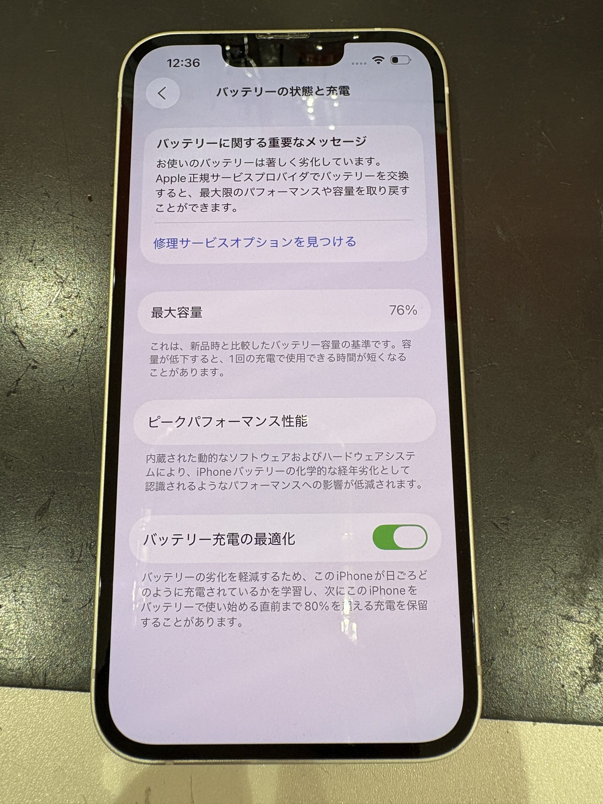 iPhone12 miniのバッテリー交換を即日対応|最大容量76%→100%に改善【川口市】