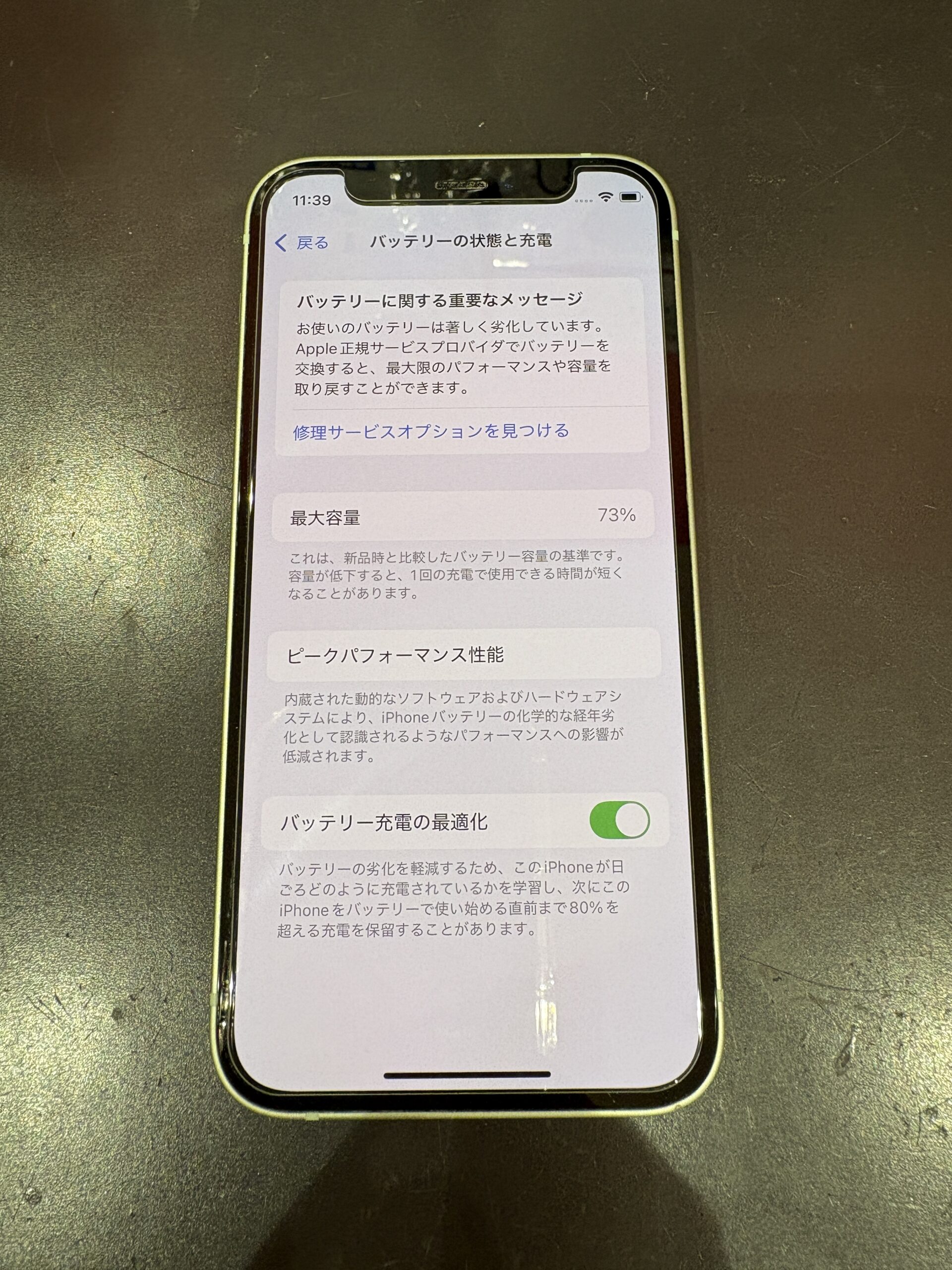 【戸田市】iPhone12mini バッテリー交換 即日修理|最大容量73%でもデータそのまま対応